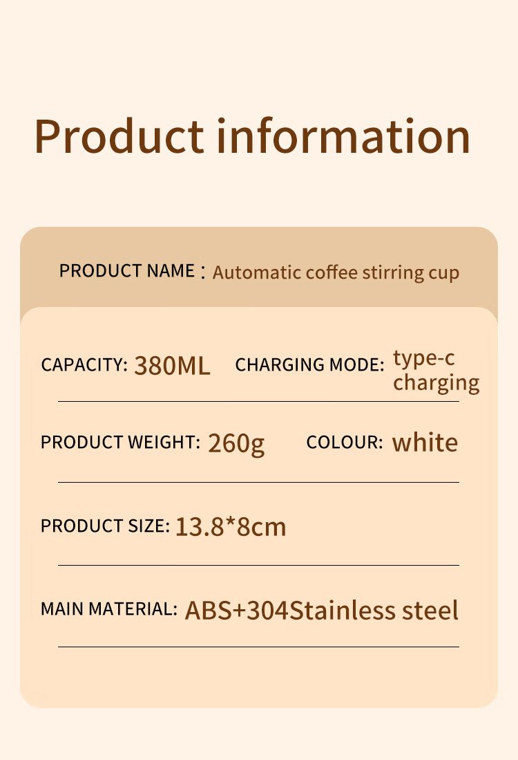 Unlock a new way of enjoying your beverages. This intelligent touch-controlled automatic coffee cup, which can meet all your beverage needs throughout the day! With core advanced technology, it can stir the coffee in just 3 seconds, ensuring uniformity without any gaps. It also has a 20-second intelligent timer and adjustable stirring intensity in multiple levels. Whether it's instant black coffee, creative lattes, protein powder, meal replacement powder, or health tea, you can handle them all with ease. Say goodbye to the hassle, lumps, and sinking problems of manual stirring. Every sip is delicate and rich, restoring the professional taste.