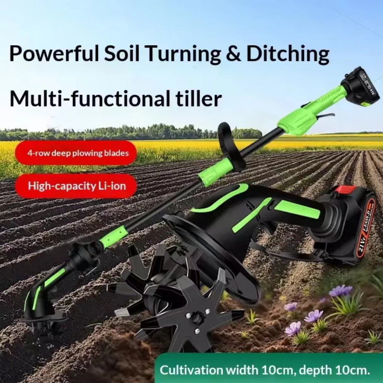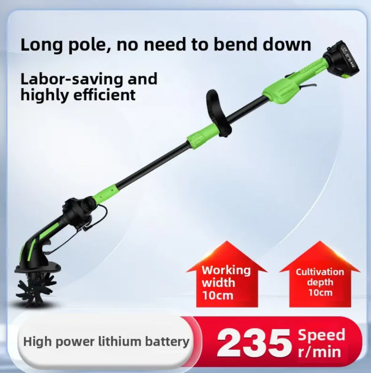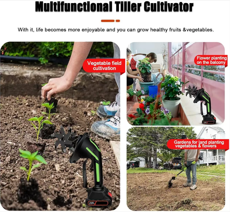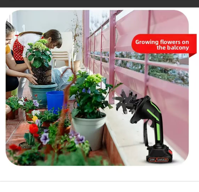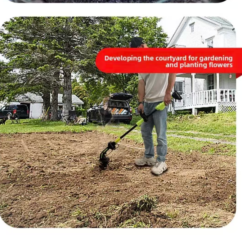 Are you still frustrated by the strenuousness and backache caused by tilling the soil and planting vegetables, the cumbersome and troublesome operation of heavy tools, and the difficulty in cleaning the garden corners? This 21V lithium battery handheld soil loosener is specially designed for home gardening, integrating lightness, ease of use, efficient soil loosening, and cordless portability. It can handle planting vegetables, flowers, soil tilling, and weeding all in one, making gardening soil loosening free from back pain and allowing you to easily create your own exclusive vegetable garden and garden.