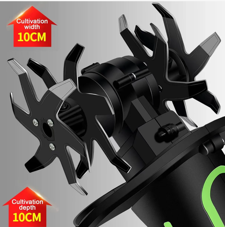 Using a high-strength alloy soil loosening cutter head with a multi-tooth blade design, it quickly breaks compacted soil, loosens the soil evenly, and has an appropriate loosening depth, which can both loosen the soil and increase air permeability, and easily cut the roots of shallow weeds, completing soil loosening and weeding simultaneously. The cutter head has a non-slip design to prevent being tangled by grass roots and vines, avoiding stalling during continuous operation, and can handle vegetable garden preparation, flower pot soil loosening, and balcony potted plant care, making it easier than a hoe or shovel. Women can also operate it easily.