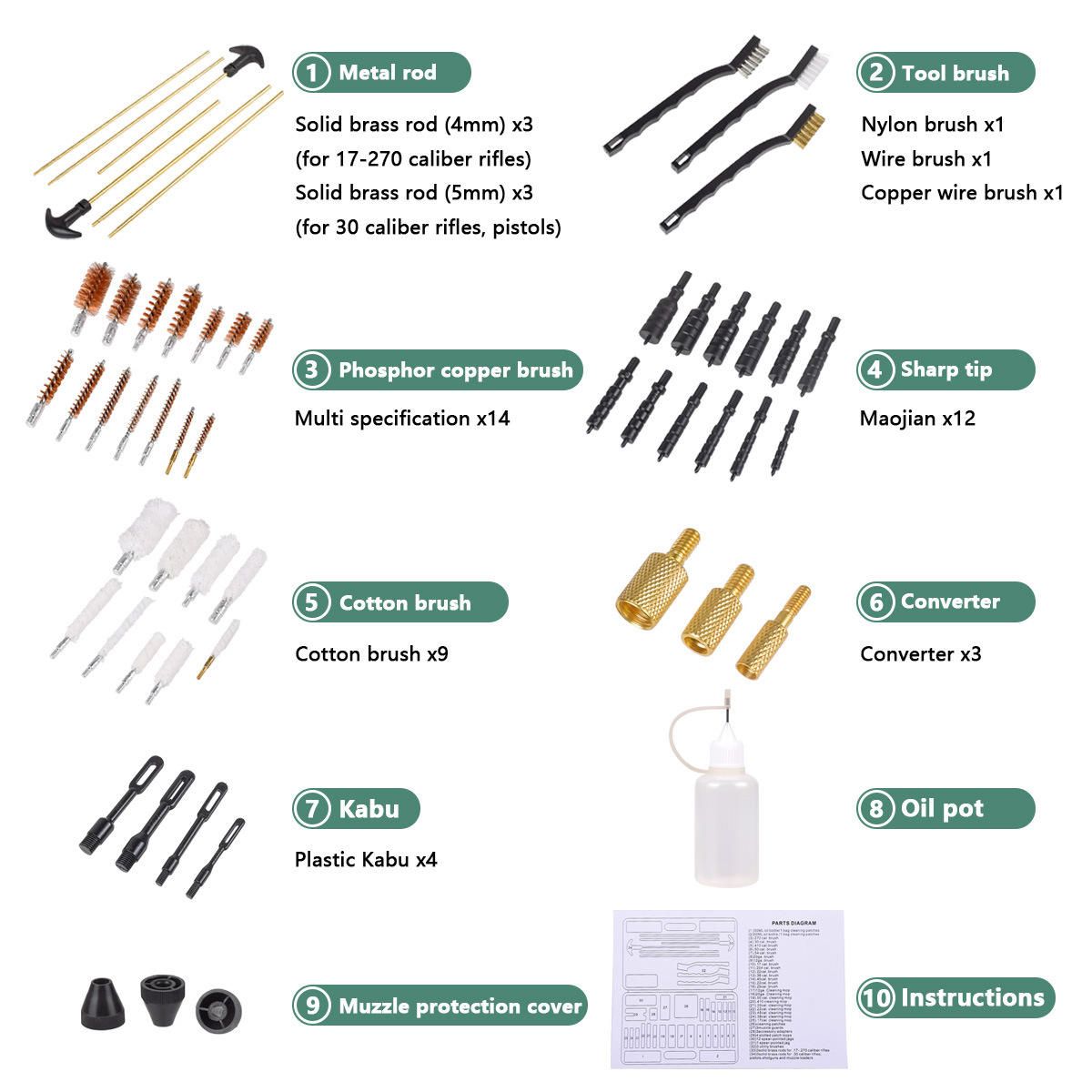58PCS Gun Cleaning Kit, Universal Firearm Maintenance Tools Set with Barrel Brushes, Brass Cleaning Rods, Nylon & Bronze Brushes, Cotton Patches, Jags, Adapters, Cleaning Bottles, Multi-Tool Brushes, Portable Hard Storage Case, for Handguns, Rifles, Shotguns, Most Common Calibers, Hunting, Shooting, Daily Care, Rust-Resistant, Easy to Use, Ideal for Gun Enthusiasts & Hunters