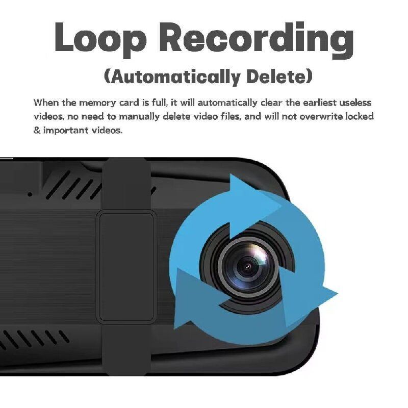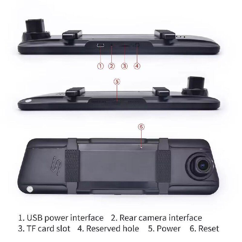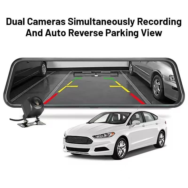 Full-screen streaming rearview mirror-style dashcam with 10-inch IPS high-definition touchscreen. Dual lenses for simultaneous recording in 1080P. Night vision enhancement technology with a 170° wide-angle view to eliminate blind spots. Automatic rearview image switching. 24-hour parking monitoring. Continuous recording without occupying memory. Waterproof, fog-proof, and dust-proof. Ensuring safety for every journey.