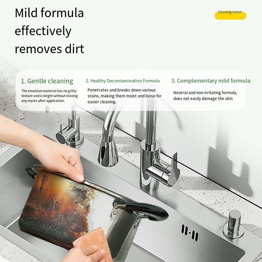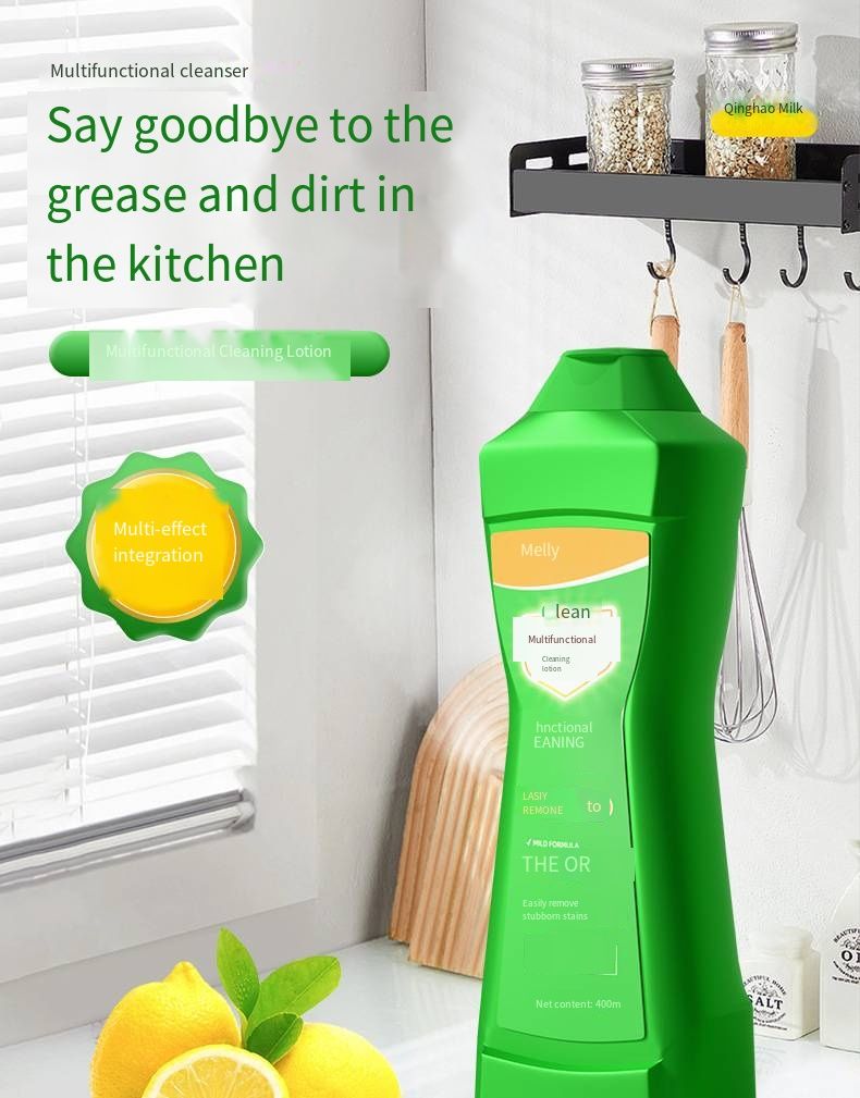 This multi-functional cleaning lotion is specially designed to address the common cleaning problems in households. It features a mild and neutral formula without any irritating ingredients. It is gentle on the skin and does not cause any harm, nor will it corrode the surfaces of utensils such as pots and countertops.The healthy stain removal formula can deeply penetrate and break down various stubborn stains. Whether it's heavy oil stains on the kitchen stove or water scale in the bathroom, it can handle them easily.
