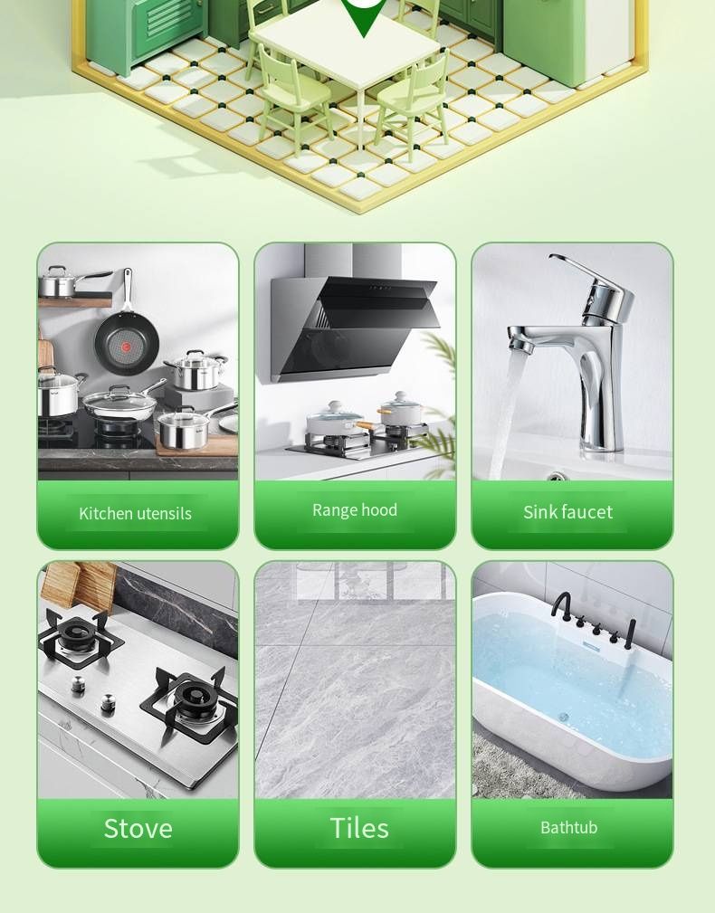 Whether it's the accumulated oil stains on the kitchen stove, the stubborn oil dirt on the range hood, or the scale on the bathroom faucet and the stains in the tile gaps, it can handle them all easily.