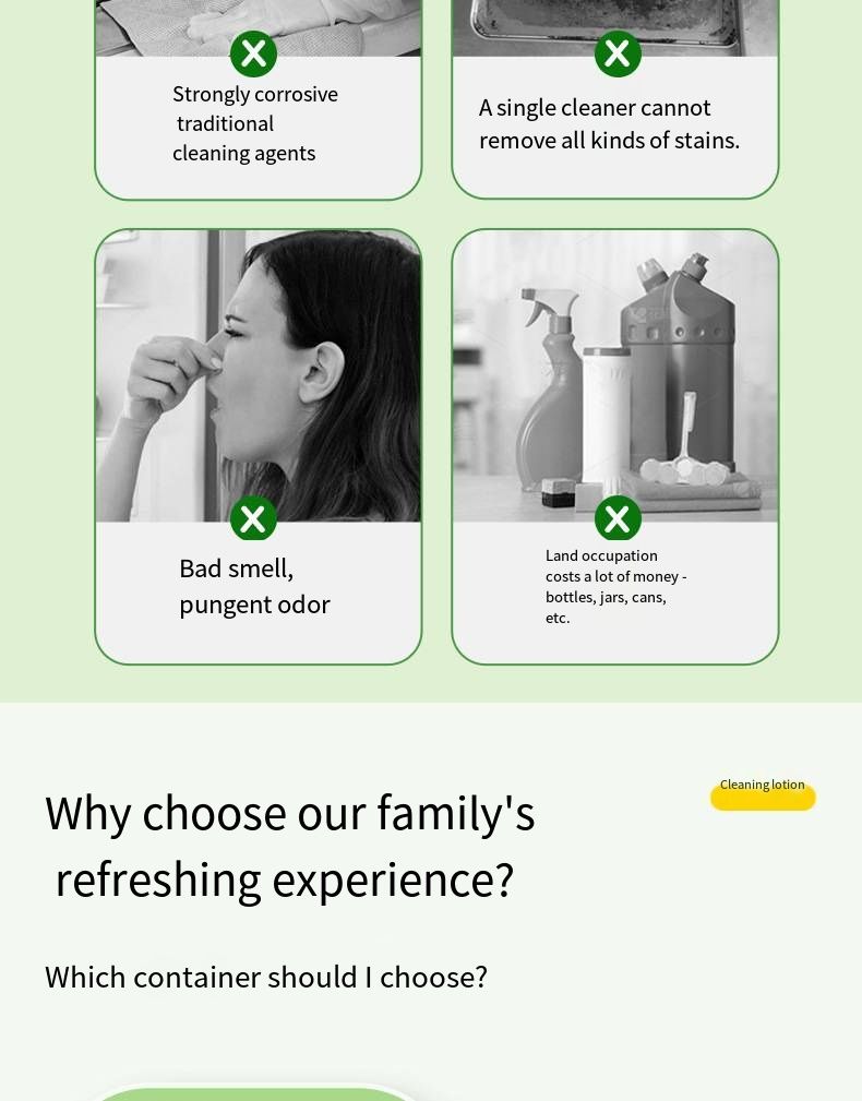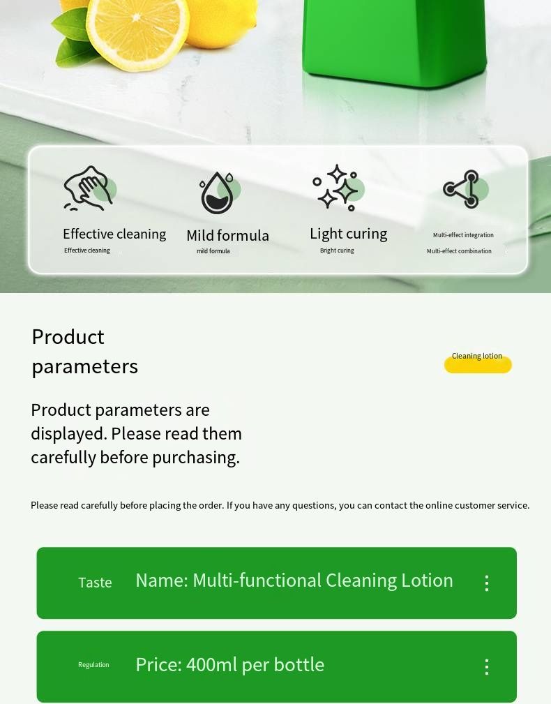 When doing daily cleaning, do you also feel frustrated by the corrosiveness, pungent odor and limited functions of traditional cleaning agents? This multi-functional cleaning lotion is precisely designed to address these issues.