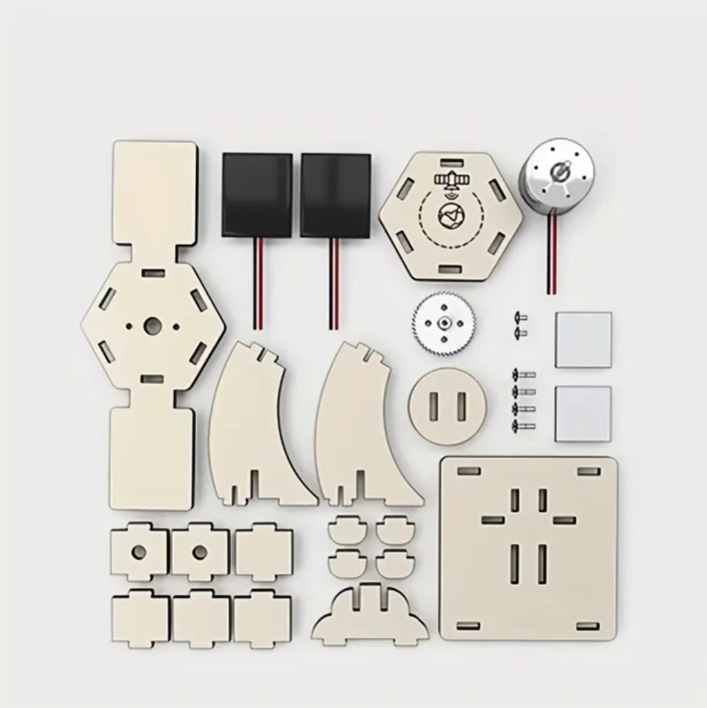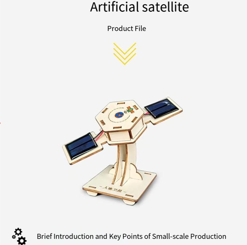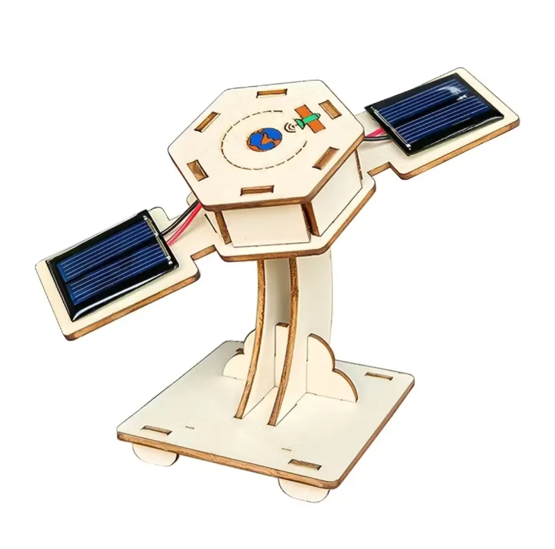 Environmentally friendly wooden laser-cut parts, safe and free of burrs. Assembly can be completed in 30 minutes. Solar-powered satellite rotates to simulate space operation. Combined with teaching manuals and PPTs, it enables children to learn about aerospace and new energy knowledge while doing hands-on activities, enhancing their practical skills and thinking abilities. It is an excellent educational and entertaining science popularization product.