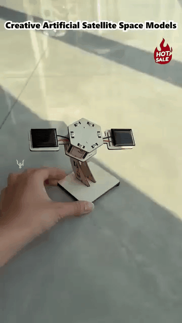 The core highlight is the solar-powered system. Two efficient solar panels absorb light and enable the satellite body to rotate slowly, simulating the actual operation of a satellite in space. Children can observe the process of solar energy converting into kinetic energy under the sunlight, intuitively understand the principles of new energy, and also compare the speed changes under different light intensities to conduct their own small experiments.
