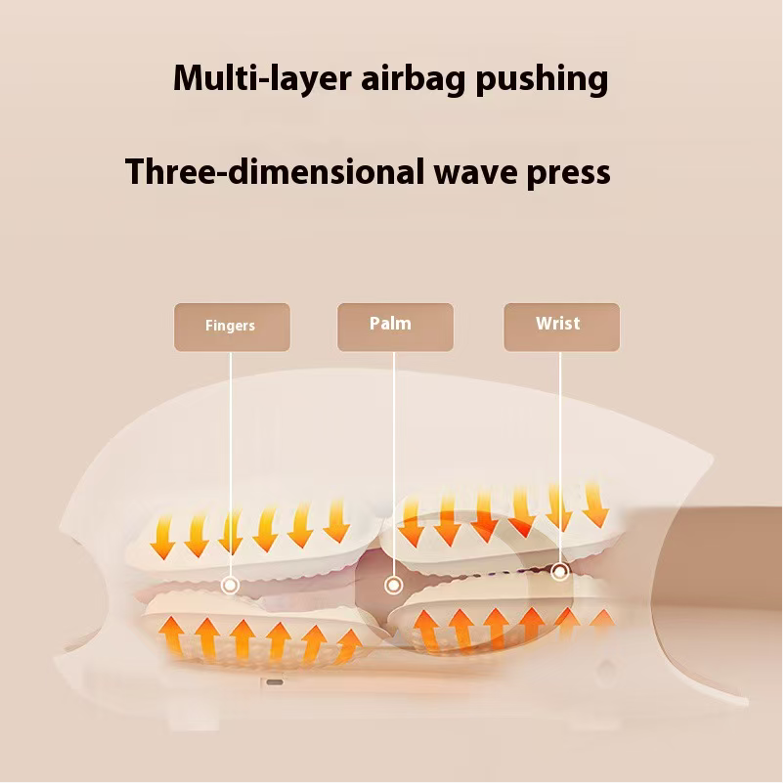 It adopts an innovative double-layer high-elastic airbag structure, combined with a finger-segmented and area-specific pressing design. During the inflation and deflation process, it forms a three-dimensional wave-like thrust, precisely covering every muscle group on the fingertips, finger creases, palm, and wrist. Whether it is "mouse hand" caused by prolonged desk work typing, or hand fatigue accumulated from household chores or manual work, it can be effectively relieved through deep kneading.
