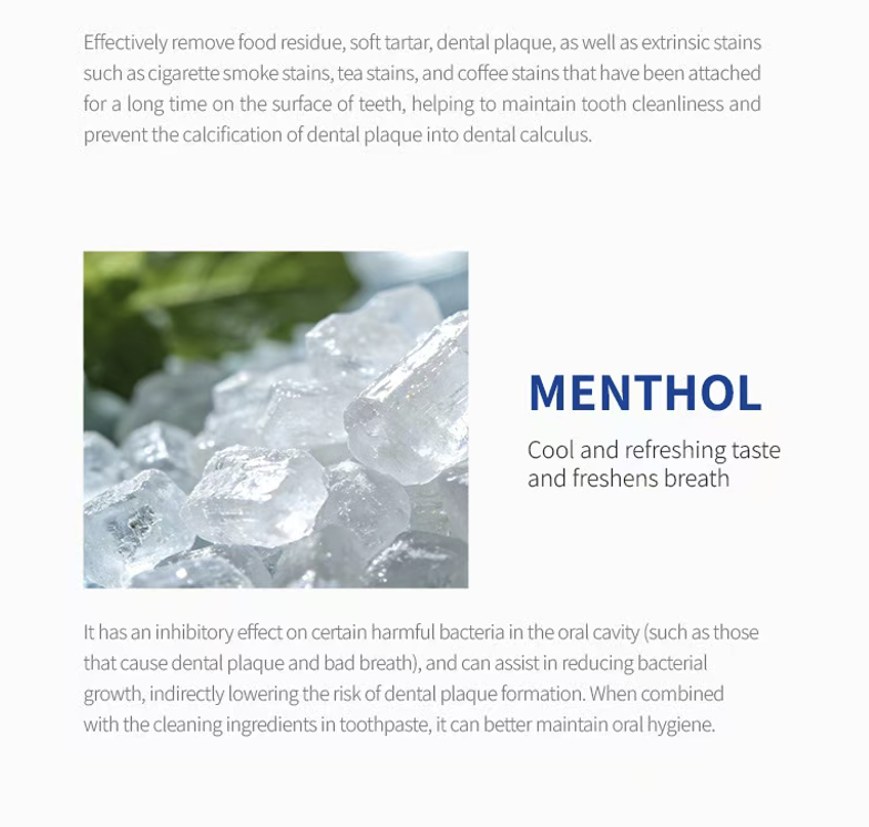 Abandoning the strong irritation of traditional bleaching agents, through physical adsorption and gentle polishing, it safely decomposes exogenous pigments such as coffee, tea stains, and cigarette stains. The fluoride-free formula is combined with natural peppermint, cleaning while refreshing breath, and sensitive teeth can also enjoy whitening with peace of mind, saying goodbye to the "the more you whiten, the more painful" problem.