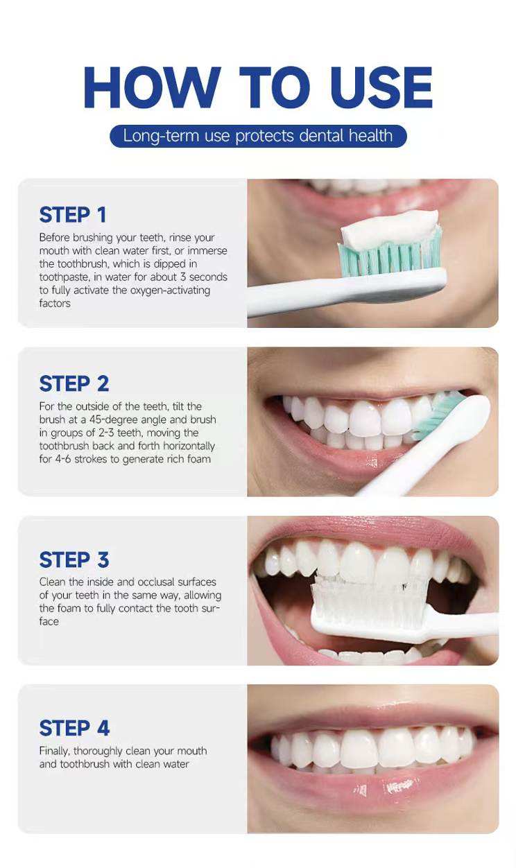 Fluoride-free formula avoids the risk of excessive fluoride, and pregnant women, children, and sensitive individuals can use it with peace of mind. The natural peppermint essence brings long-lasting freshness, making each brushing session a dental SPA, safeguarding the oral health of the whole family.