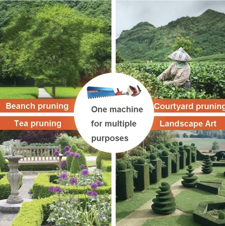 It is widely applicable in municipal landscaping, garden hedge trimming, tea plantation management, and nursery shaping. Its lightweight and portable characteristics allow it to be flexibly moved for flat ground or slope-based tea plantations, enabling smooth completion of pruning tasks and keeping the greenery always neat and beautiful.