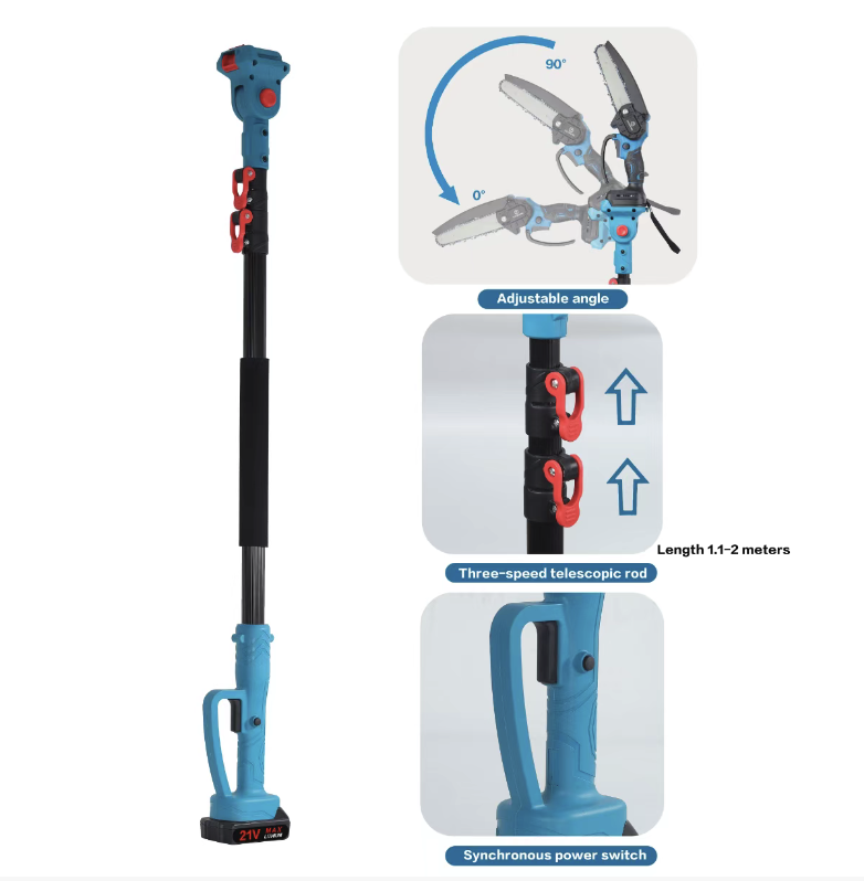 Combined with multiple sections of telescopic extension rods, it can extend up to several meters, allowing you to reach high branches without a ladder or climbing. The anti-slip grip and shoulder strap design make it easy to avoid fatigue during long operations, fundamentally avoiding safety hazards in high-altitude operations, and making it easy for the elderly to handle.