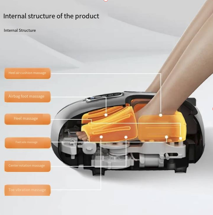 This household multi-functional foot massage device uses fully enclosed airbags for kneading, combined with high-frequency vibration and two levels of infrared heat therapy, precisely relieving foot fatigue and promoting blood circulation. The intelligent panel is easy to operate and compact, not occupying much space. It is a great home health product for relieving soreness from prolonged standing and warming the feet for better sleep.