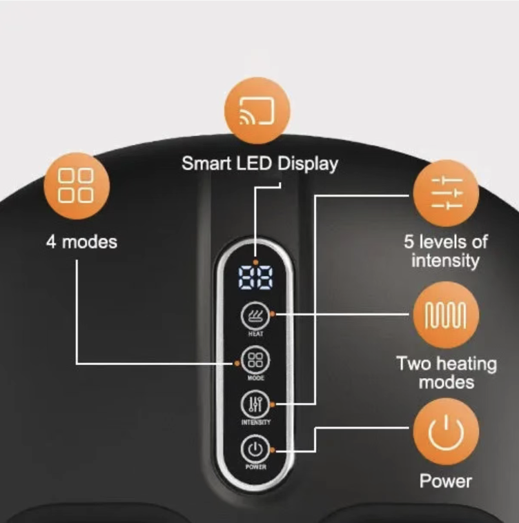 The body is equipped with a high-definition digital display panel. One-click switching between massage modes, heat therapy levels, and timing functions is possible. It is easy to operate and understand, even for the elderly. The compact body does not take up much space. It can be placed in the living room, bedroom, or study room, allowing you to enjoy foot relaxation at any time.