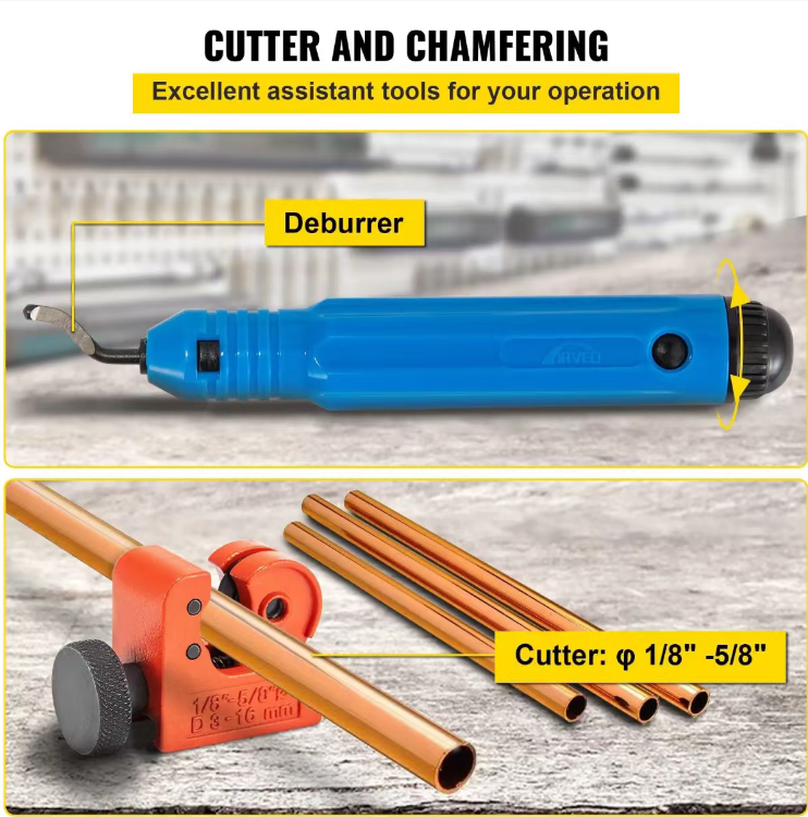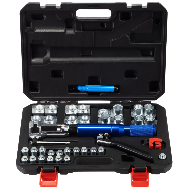 Apart from the core hydraulic expansion tool, the kit also includes cutting knives, chamfering tools, and positioning pins, providing all the tools needed for the entire process of pipe cutting, deburring, and expansion. There is no need to pair it with other tools. Once opened, you can complete the entire set of pipe expansion operation. The hard tool box is classified for storage, making the tools less likely to be lost. It is convenient to carry and store. Auto repair shops can go out for emergency repairs and DIY maintenance can also handle it easily.