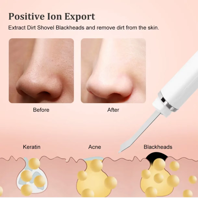Ultrasonic electric skin scraper with high-frequency vibration to atomize and remove dirt from pores, gently exfoliate blackheads, acne and aged keratin, without damaging the skin barrier. This one device does it all - deep cleansing, exfoliation and brightening the complexion. Say goodbye to strawberry nose and rough skin texture, and double the absorption of skin care products. Compact and portable, you can enjoy professional-level cleaning at home and cultivate a transparent egg-like skin.