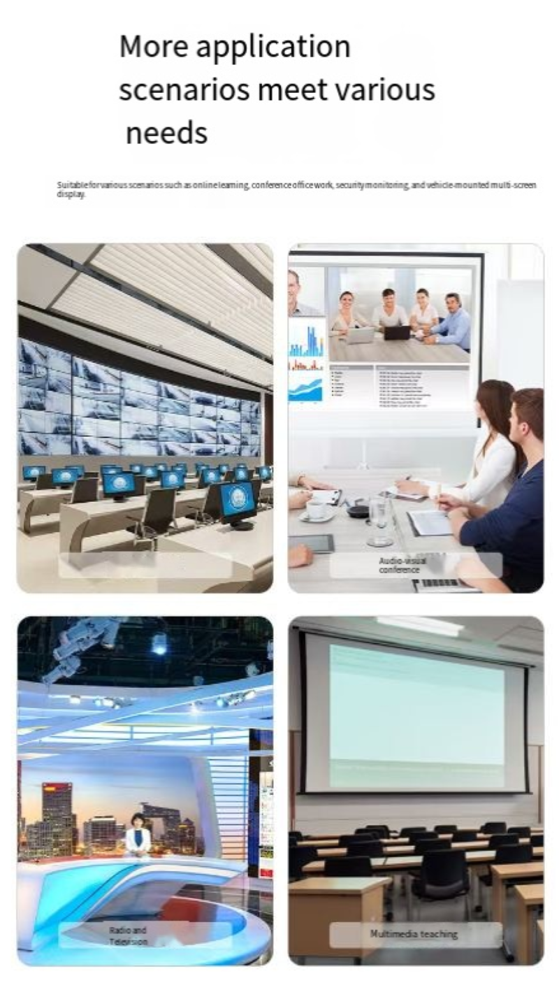 With a 60Hz high refresh rate transmission, it ensures smooth video and animation without lag, and PPT switching and data presentation are clear and stable. It says goodbye to blurry and flickering images. The compact and portable design allows it to be easily placed in a briefcase. Whether in a fixed meeting room, a temporary office location, or an external business presentation, it can be quickly deployed and plugged in and used immediately.