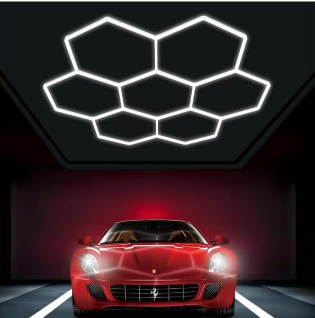 Are you still bothered by the dim lighting during car washing, unclear visibility of paint flaws, and monotonous atmosphere in the garage? This hexagonal honeycomb LED lamp is specially designed for car repair and beauty services, garage workstations, featuring high-brightness illumination and a technological atmosphere. It is suitable for car washing, repair, and daily parking, creating a professional-level lighting space.