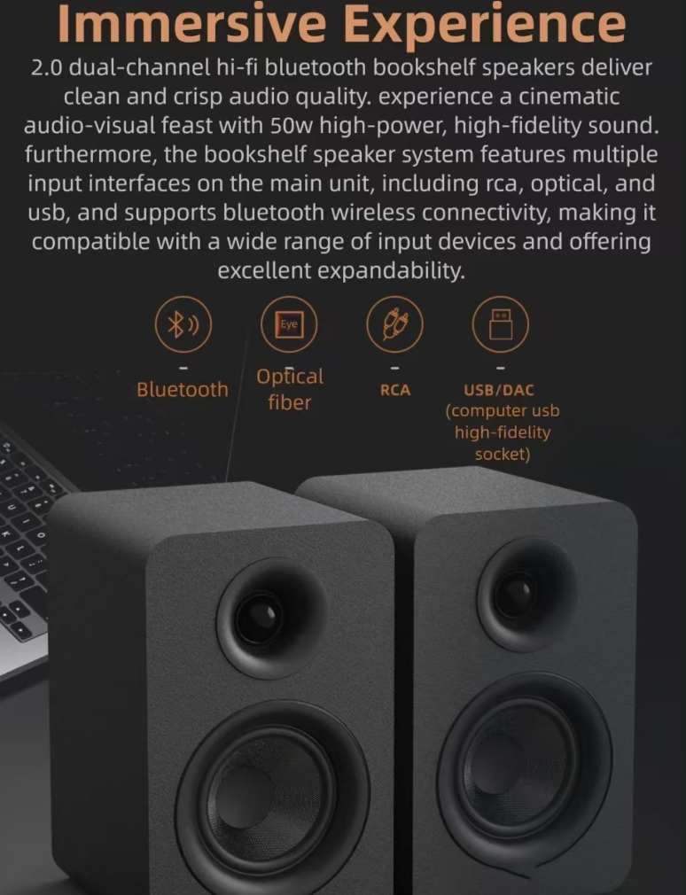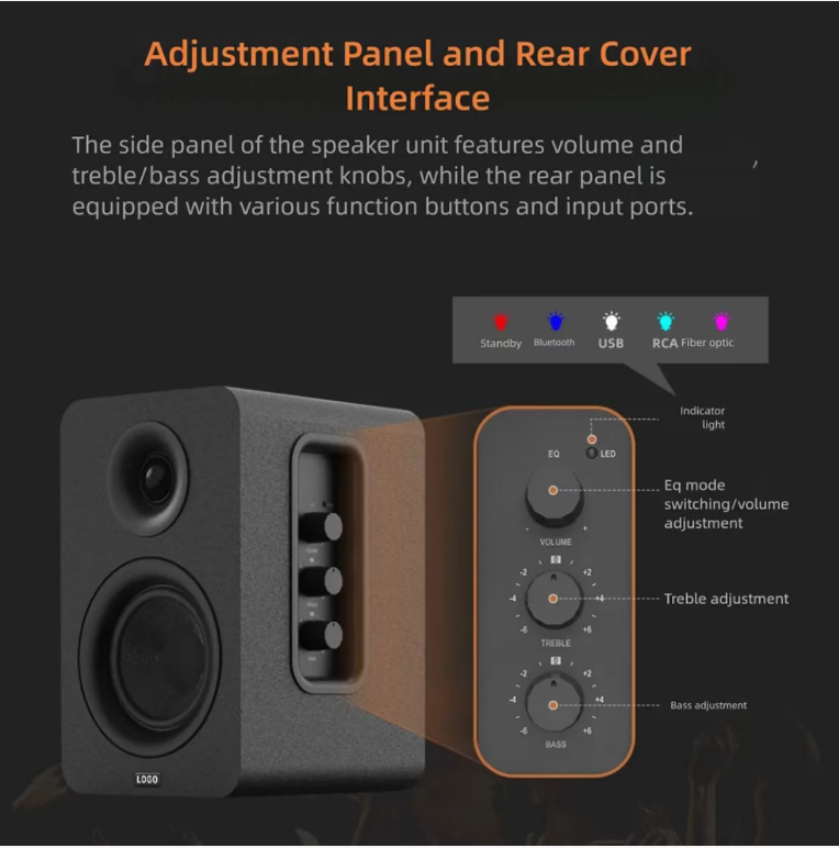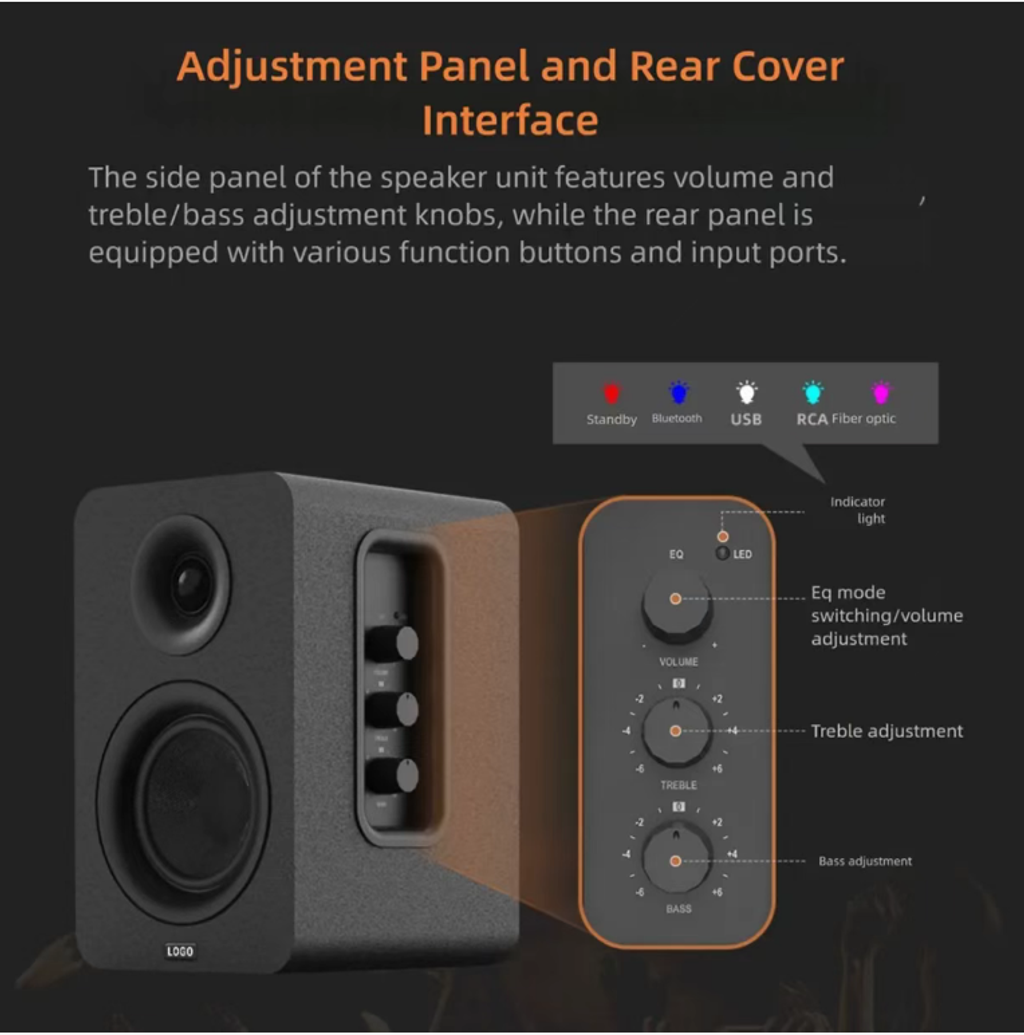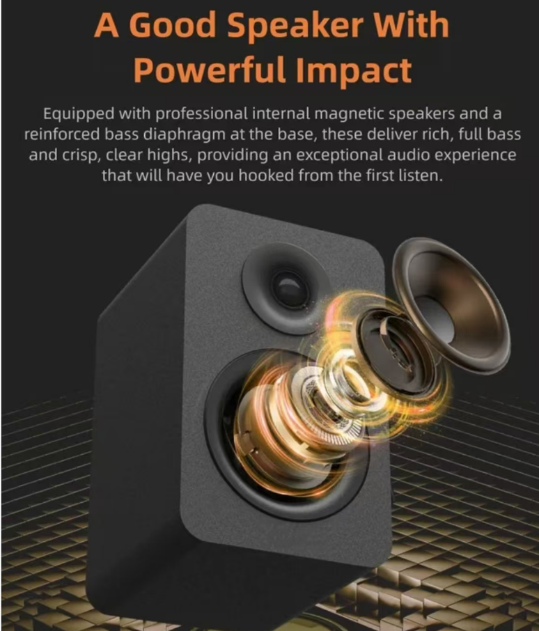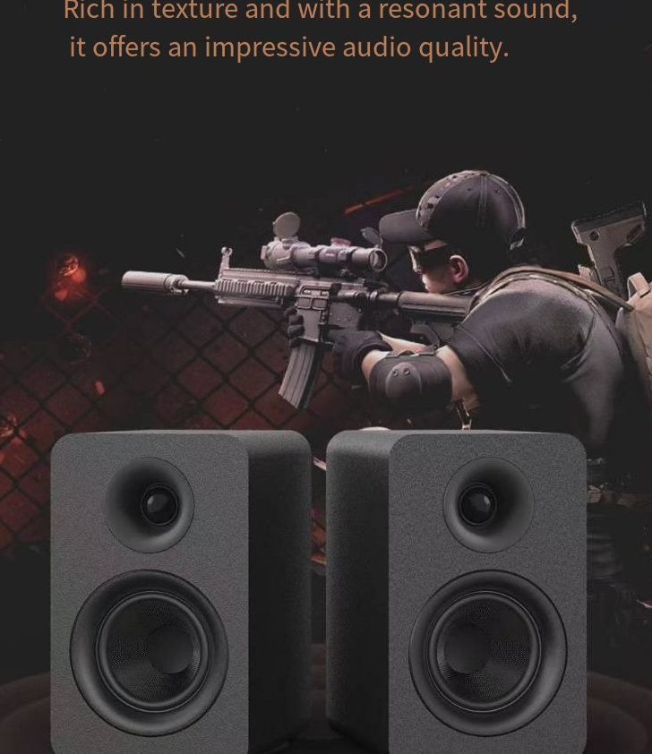 HIFI audiophile bookshelf speakers, with balanced three-frequency high-fidelity resolution, clear treble and full bass. Suitable for multiple devices such as computers and TVs. Available in wired and Bluetooth connection options. With a simple fabric appearance, it is versatile for home decoration. It has low distortion and can play at high volume without any distortion. It is an affordable and high-quality speaker for desktop audio and home light cinemas.
