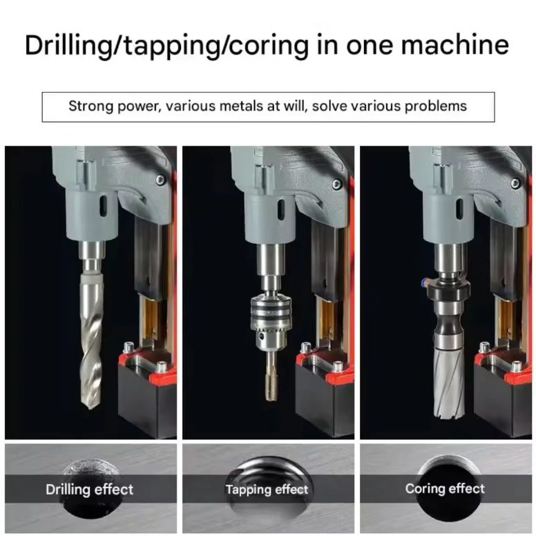 It supports various operations such as drilling, core extraction, tapping, and reverse rotation, and can be combined with different specifications of drill bits and taps to easily complete the entire process of opening holes to thread processing. Whether it is deep hole processing of thick steel plates or precise tapping of precision components, it can complete the task efficiently, significantly improving work efficiency.