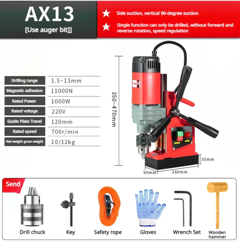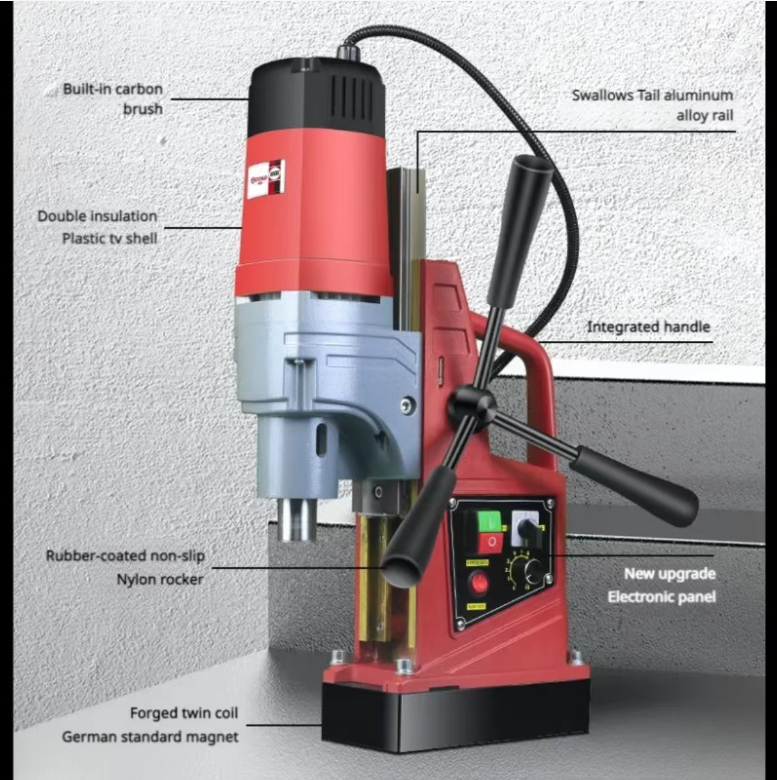 It is equipped with a pure copper wire motor, providing powerful power, and can easily meet the multiple operation requirements such as drilling, core extraction, and tapping. The powerful magnetic base can firmly attach to the metal workpiece surface, and can remain stable even in inclined or vertical working conditions, eliminating the risk of displacement and ensuring each drilling operation is precise and error-free.