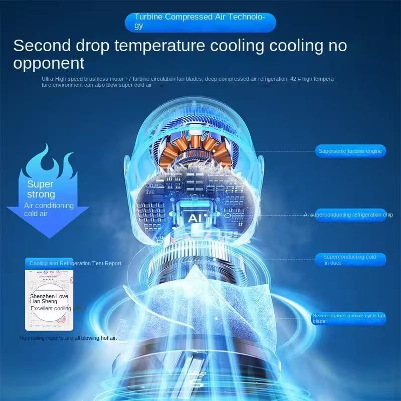 superconducting refrigeration chip, which can quickly generate strong cold air.It is equipped with a magnetic suction suspended motor and a bionic seven-blade fan blade. When running, it has extremely low noise. There are 5 adjustable wind speeds that can be adjusted as needed, and it can deliver cool air up to 10 meters away, covering the entire house.