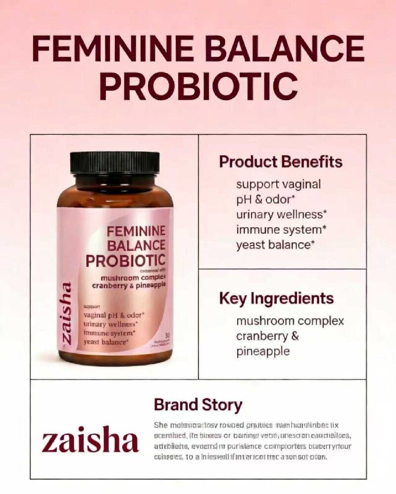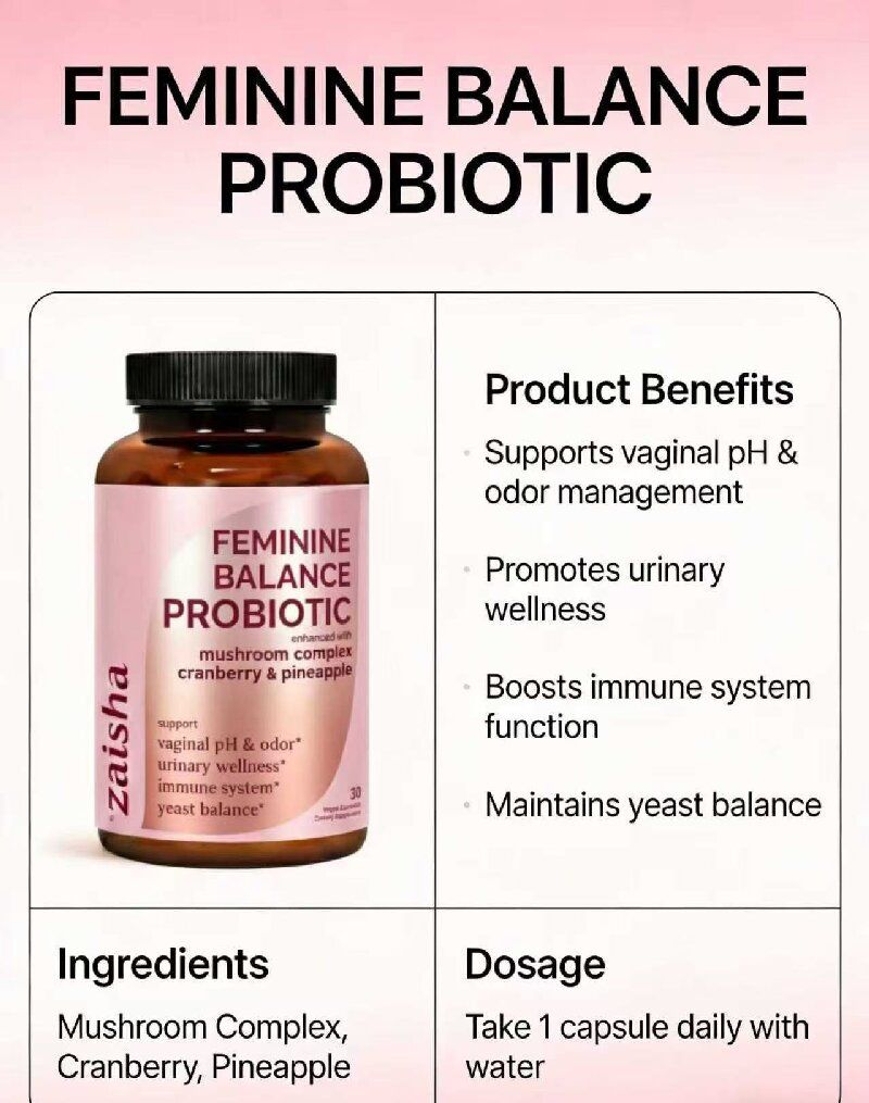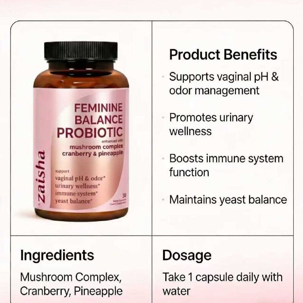 Zaisha Women's Balance Probiotic is specially designed for women's private health. It takes mushroom complex as the core, combined with natural plant extracts of cranberry and pineapple, and works in synergy with probiotics to create a gentle and efficient care plan. Take one tablet daily. It can precisely regulate the vaginal microecology, balance the pH value, effectively improve odor and itching for a long time, and maintain the stability of the yeast flora. At the same time, it can also enhance the defense of the urinary system, reduce the risk of infection, and boost the overall