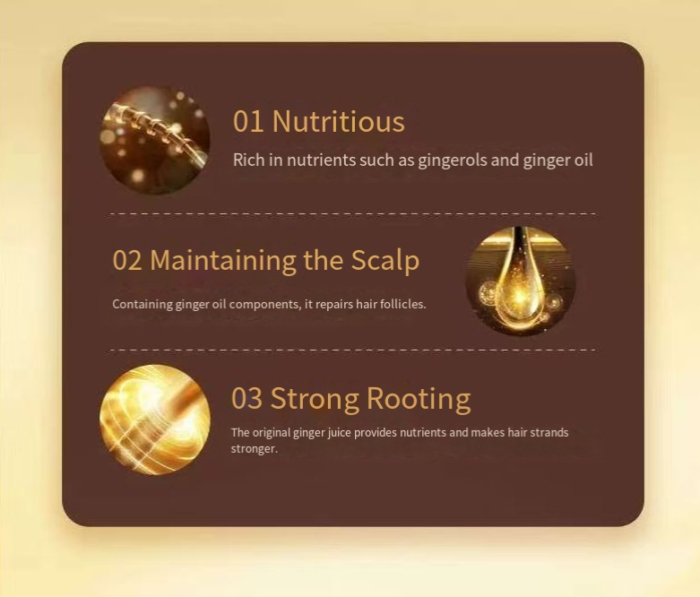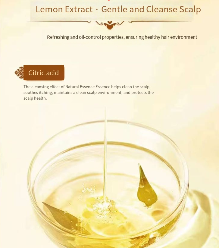 The core ingredients, ginger juice and gingerols, can deeply cleanse the hair follicles, infuse the scalp with natural nutrients, strengthen the hair roots, and reduce hair breakage and loss. The lemon essence balances the scalp's oil and moisture, alleviating oily, itchy, and recurring dandruff problems, keeping the scalp fresh and comfortable. The cereal protein wraps the hair strands, fills in damaged hair scales, and leaves the hair strands soft, shiny, and lustrous after washing. It says goodbye to dry and frizzy hair.
