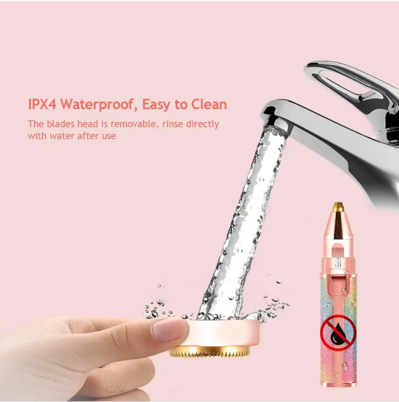It's not just an eyebrow trimmer; it's also your all-in-one hair removal assistant! Just replace the blade and you can easily handle the small hairs around the lips, annoying nasal hairs, underarm, and arm fine hairs. It can handle multiple tasks with one device, saving you the trouble of buying a bunch of tools. The IPX6 waterproof design means you can rinse the blade with water after use, making cleaning a breeze. It's a joy for the lazy ones!