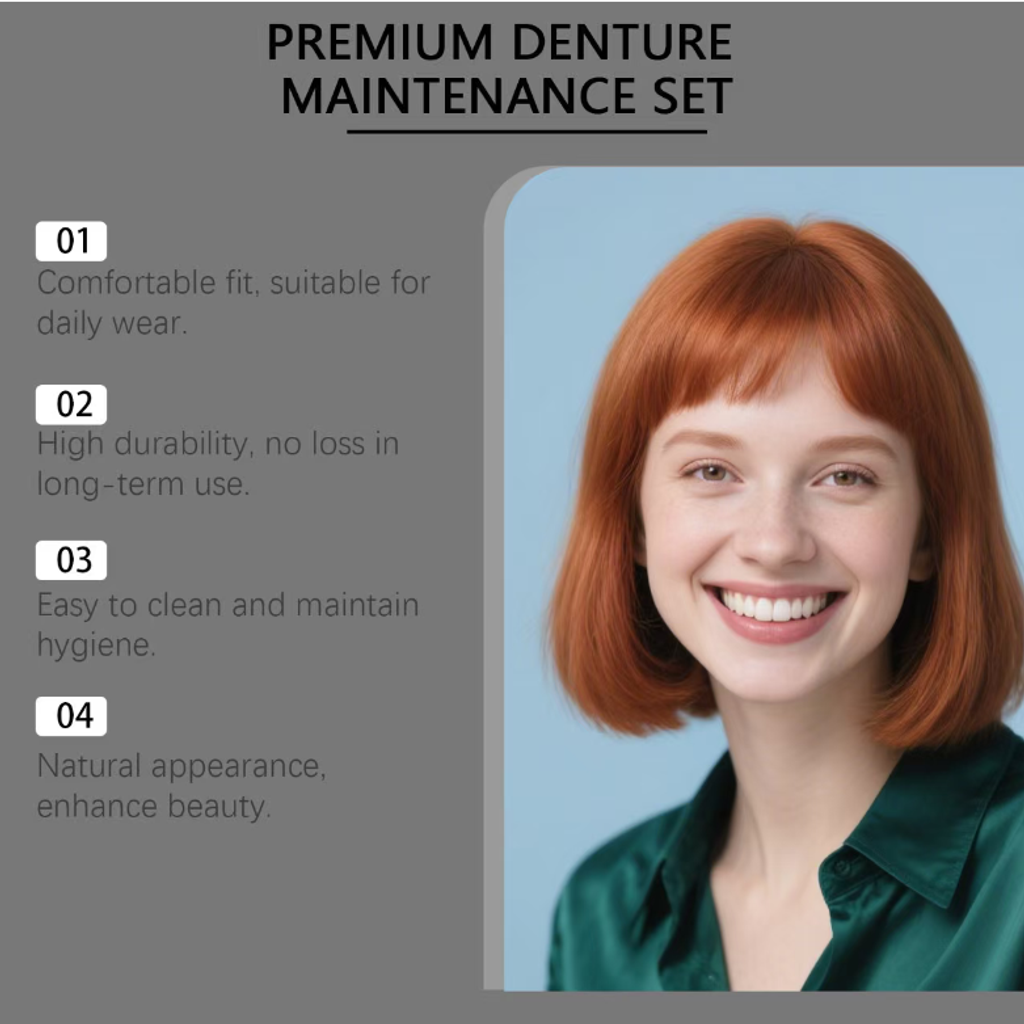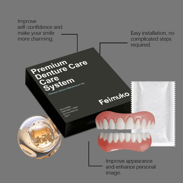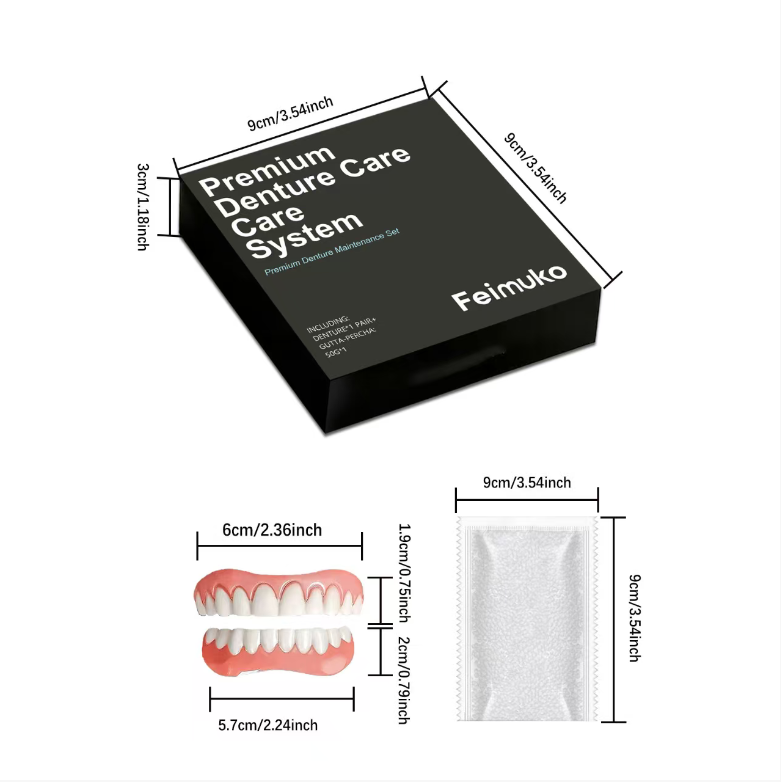 The core denture accessories of the set are designed with high-fidelity technology. The tooth colors are clear and natural, replicating the texture and luster of natural teeth. The gum part matches the human skin tone, being delicate and realistic. Even when observed closely, it is difficult to distinguish whether it is real or not. The precise cut-and-sew design follows the ergonomic principles of the human mouth, achieving a seamless fit with the gum. After wearing, it fits securely and does not shift or come off. It can handle daily speaking, smiling, and light eating without any problems. This completely eliminates the psychological burden of "fear of showing teeth".The embarrassment caused by missing teeth, social concerns, or image troubles in unexpected situations can all be easily resolved by the Feimuko high-end denture decoration set. This decorative set, which combines beauty, comfort, and practicality, is specifically designed for those who value a natural appearance and convenient care. It does not require complicated installation and can instantly refresh one's smile, becoming an excellent tool to enhance one's appearance in daily social interactions and important occasions.