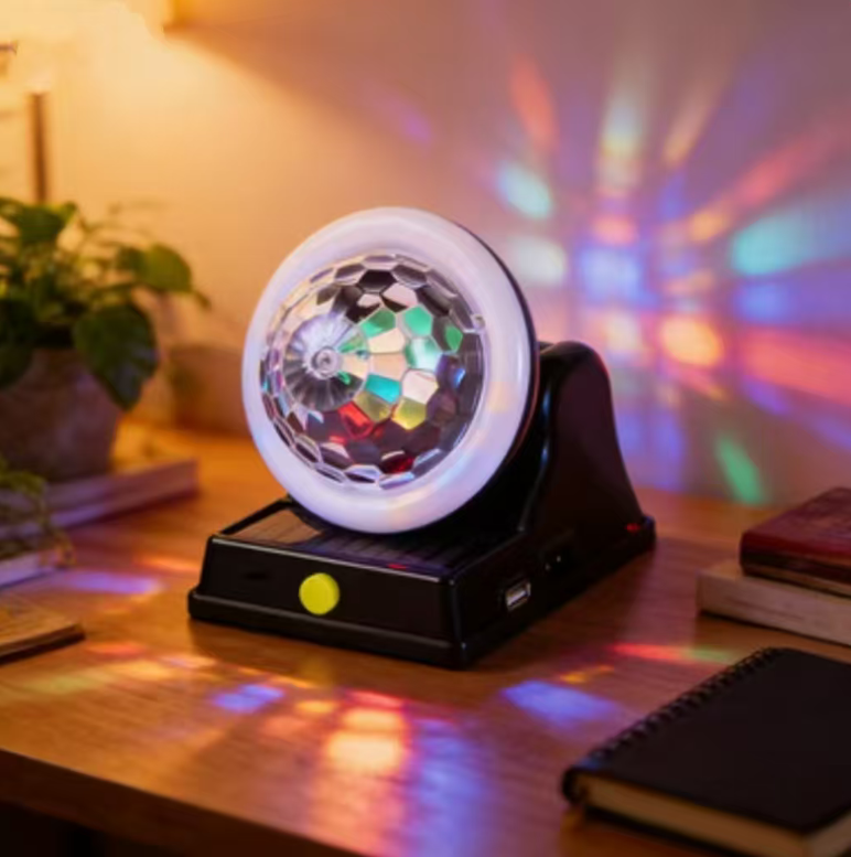 It has a built-in high-transparency prism magic ball. When rotating, it refracts various colors such as red, green, blue and purple. The light interweaves and flows in the space, instantly creating a dynamic atmosphere like in a KTV or bar. The outer ring of soft light strips can also be turned on separately for use as a cozy night light, balancing romance and practicality.