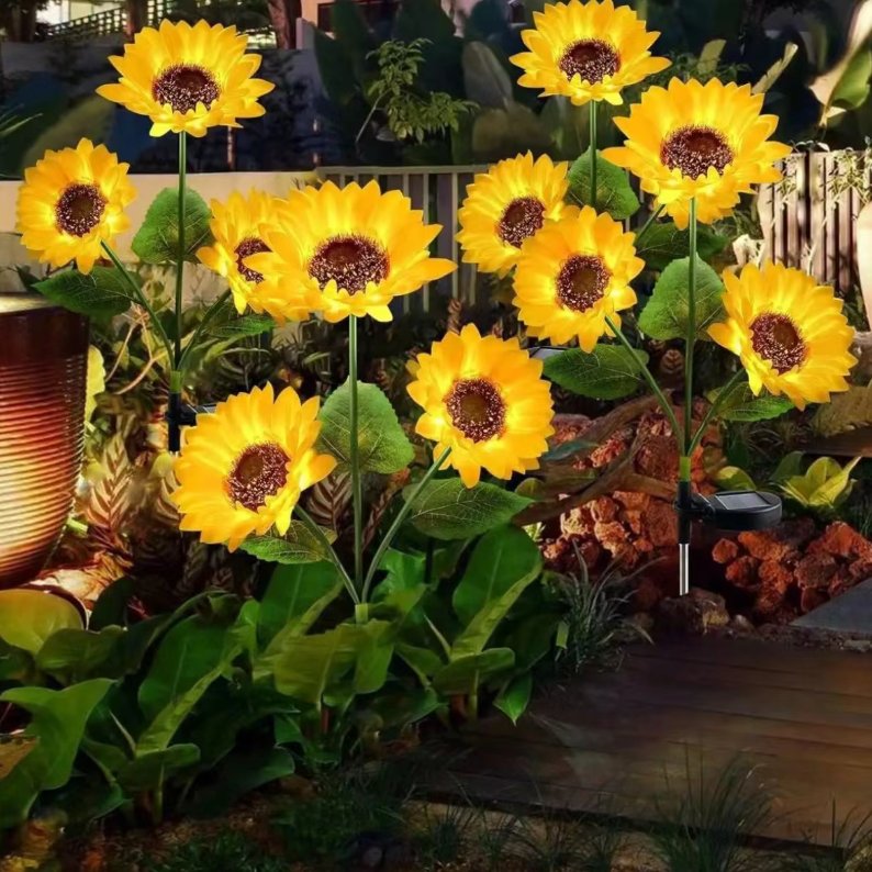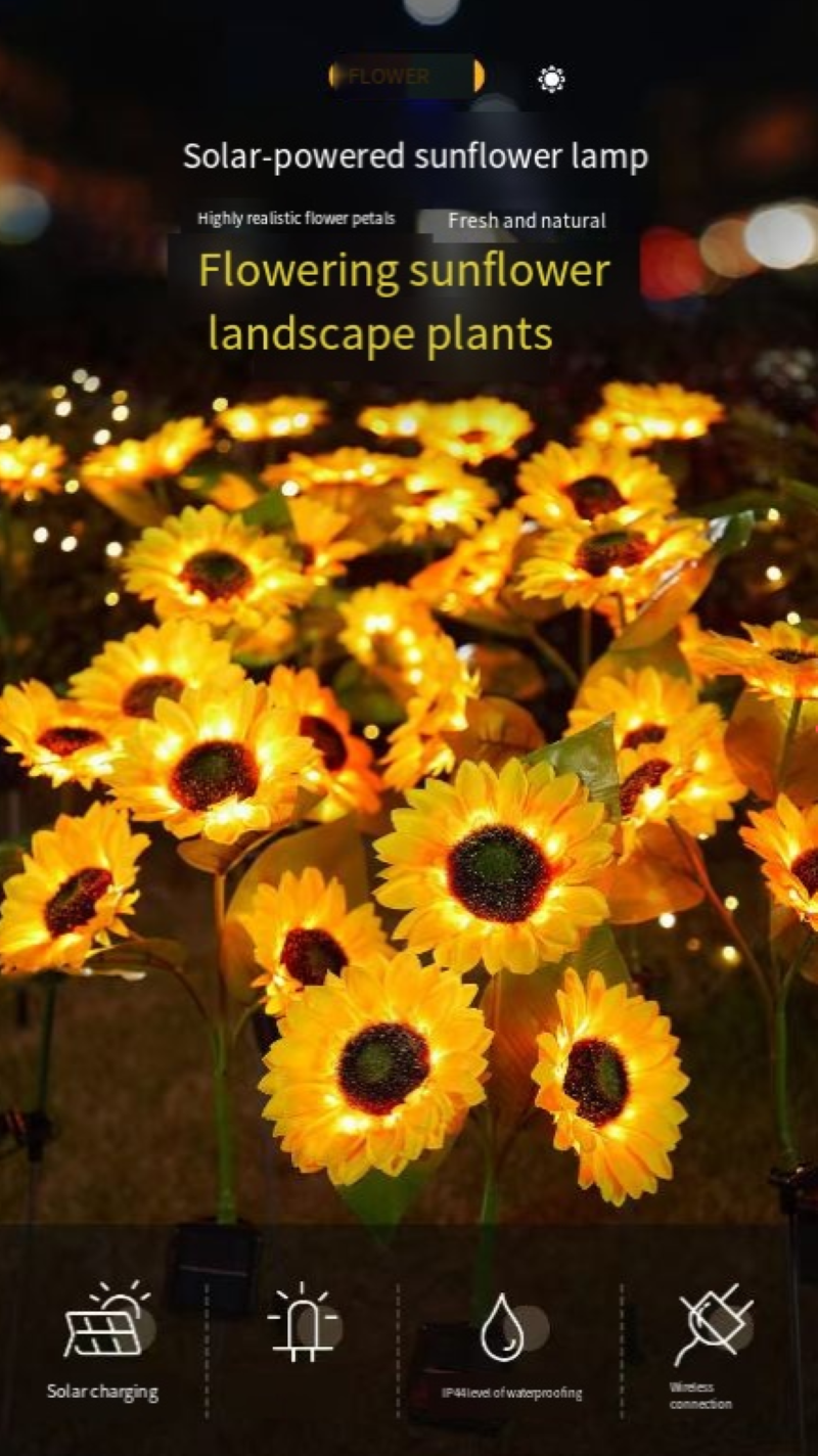 It is not only a practical choice for outdoor lighting but also a decorative treasure with a sense of ceremony: At a summer evening garden party, the warm light sunflower sea can create a warm atmosphere; during the Mid-Autumn Festival moon viewing, the illuminated sunflower lamp can complement the moonlight; if given as a gift to a friend who loves gardening, it is also a unique gift that can make the garden "bloom day and night".