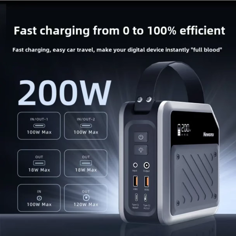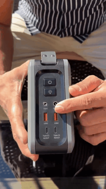 The body comes with a handle design, lightweight structure, and single-handed carrying without pressure. It doesn't take up much space when placed on the desk and can be easily carried during outdoor trips. It is equipped with multiple output interfaces such as USB-A and Type-C, supporting simultaneous power supply for mobile phones, tablets, laptops, camping lights, fans, and other devices. It can handle all devices with one device, eliminating the need to carry multiple chargers. It can be easily adapted for use in desk, outdoor, and travel scenarios.