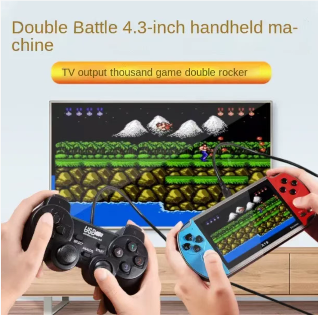 Portable game console with a 4.3-inch high-definition screen, smooth dual-stick operation, built-in thousands of classic FC arcade games, supports two-player battles and TV gaming. It can also play music and watch videos. The TF card can expand memory. With a large-capacity battery that lasts for 4-6 hours, it is portable and compact, allowing you to enjoy the joy of childhood games with you wherever you go.