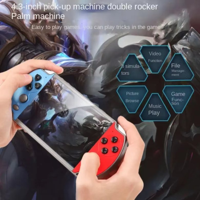 The 4.3-inch high-definition screen has vibrant colors, detailed pictures, and high scene reproduction accuracy, providing a visual experience far superior to old-fashioned handheld consoles. The body is designed in red and blue color contrast, with a comfortable grip that fits the palm, and is not prone to fatigue even during long gaming sessions.