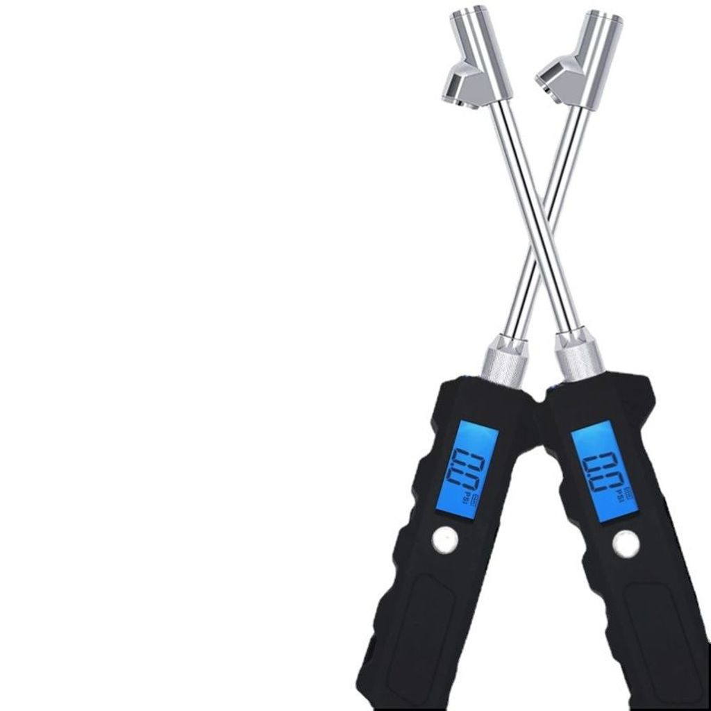Professional automotive repair-grade long-rod digital tire pressure gauge with 360° rotatable probe, precisely adapted to the valve stems of both inner and outer tires of heavy-duty trucks. Equipped with LED lighting and high-definition backlit digital screen. Anti-drop and anti-slip portable design. Universal for all vehicle types (cars, motorcycles, bicycles). High-precision tire pressure detection tool.