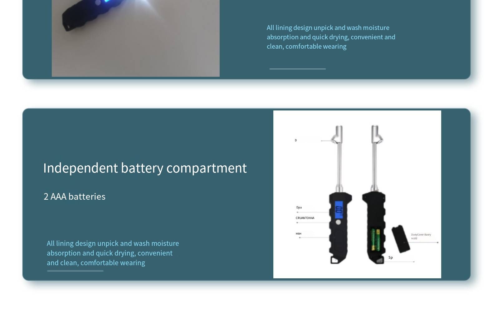 The high-definition backlit digital screen, combined with LED auxiliary lighting, enables you to clearly read the tire pressure values even in dim environments such as at night or in underground garages, avoiding the problem of blurry readings in traditional pointer-type tire pressure gauges.