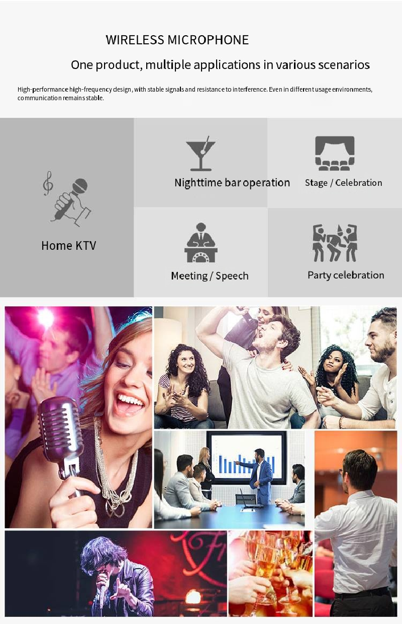 From professional performances to daily entertainment, from indoor meetings to outdoor activities, this microphone kit offers you a professional-level speaking experience with stable performance, clear sound quality, and convenient operation. It is an ideal choice for enhancing event quality and meeting the needs of multiple interactions.