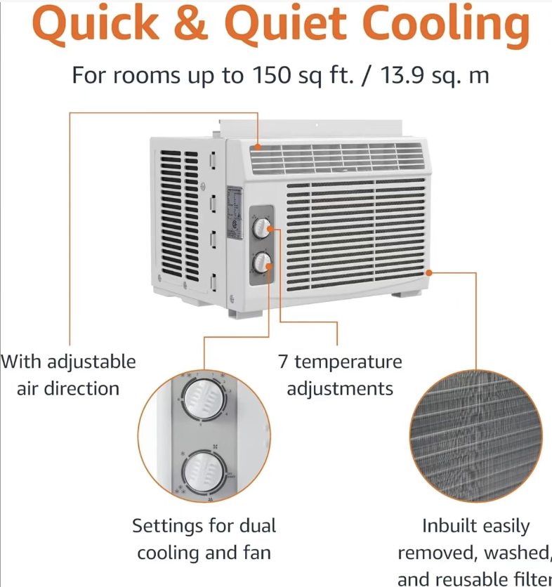 Single-cooling window air conditioner, powerful cooling and quick temperature drop, integrated design for easy installation, simple operation with mechanical knobs, low-noise operation without disturbing sleep, easy cleaning, durable and trouble-free, it is a high-value summer cooling device for renters and small-sized apartments. It can easily get rid of the sweltering heat and enjoy the coolness.