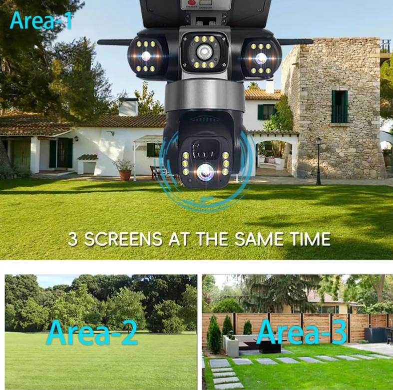 As a surveillance device, it is equipped with a high-definition camera, supporting horizontal 270° and vertical 90° rotation, combined with a 350° rotating pan at the bottom, achieving 360° no-angle coverage. Whether in the corner of the fence or in an open area, every detail can be clearly captured. When the LED lamp mode is activated at night, 120 high-brightness light bulbs can illuminate an area of 50 square meters. It is not only a practical tool for courtyard lighting but also can supplement the camera's lighting, making the night surveillance image color reproduction more realistic and avoiding the black-and-white blurriness of traditional infrared surveillance.