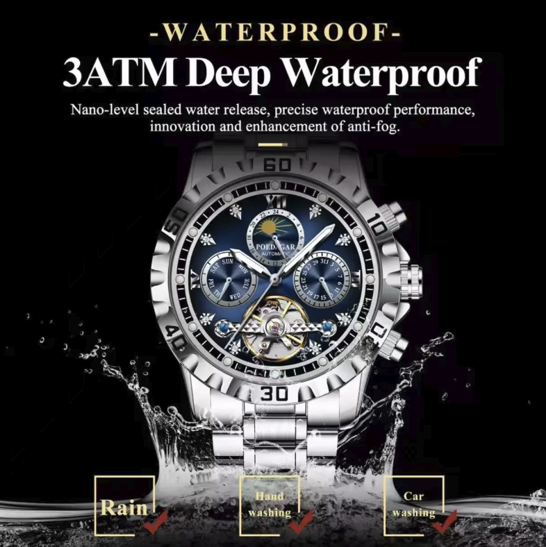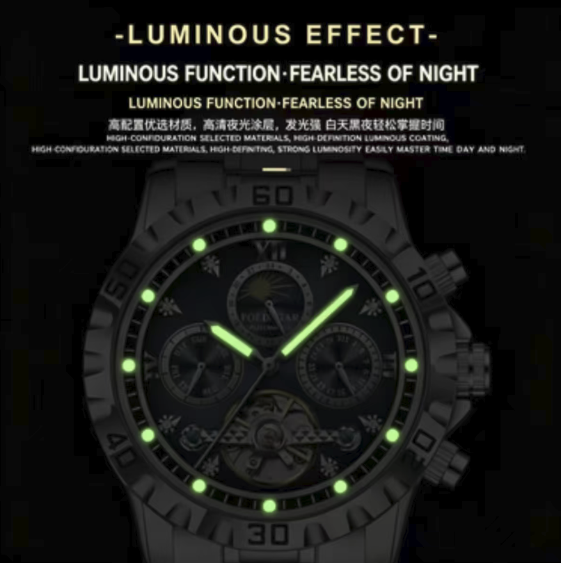 - Swiss precision movement waterproof automatic mechanical night vision men's wristwatch