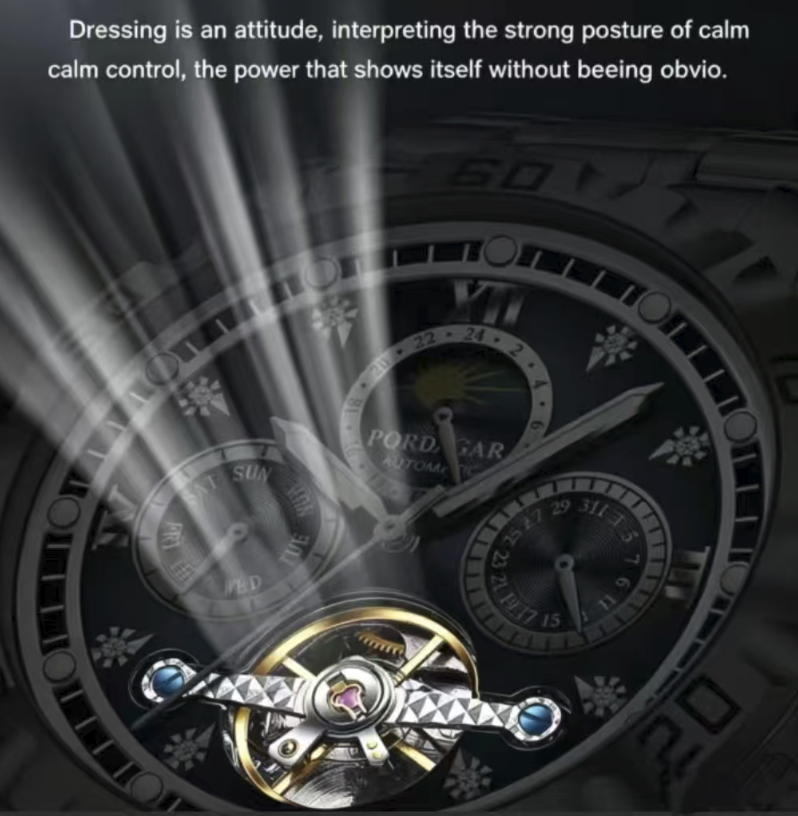 ⚙️ Automatic mechanical movement, hollow tourbillon reveals mechanical aesthetics