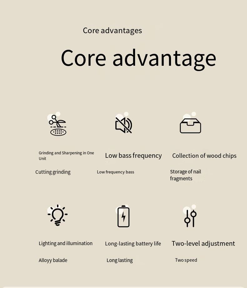 The LED digital display clearly shows the gear position and battery level, and the USB fast charging ensures better battery life. The multi-head design caters to the needs of the entire family, suitable for babies, pregnant women, the elderly, and nail enthusiasts. It can handle the trimming of sharp baby nails, daily adult nail polishing, or the trimming of thickened nails for the elderly without causing pain. The entire machine is compact and portable, allowing it to be carried around during business trips or travels. It is truly a universal nail care device for the entire family.