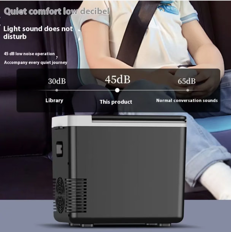 This 10L dual-purpose home and vehicle refrigerator: features dual modes of semiconductor cooling and heating, compatible with 12V 110V, operates at a low noise level of 45dB. It is compact and doesn't take up much space. It is suitable for camping by yourself, commuting, keeping food warm during transportation, and storing items in rental properties. It enables you to enjoy cold drinks and hot food anytime and anywhere, and says goodbye to makeshift solutions.