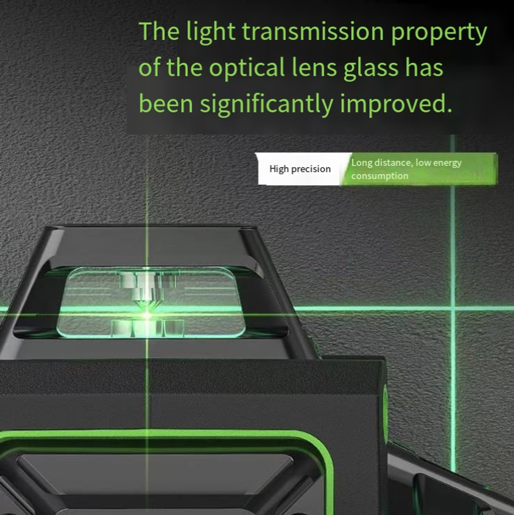 It uses imported green light source, with clear and sharp light, which can be clearly seen even in strong light. The 16-line coverage can simultaneously project horizontal, vertical and diagonal lines, meeting the needs of various processes such as wall construction, tile installation, ceiling installation and plastering, and eliminating the need for repeated measurements and rework.