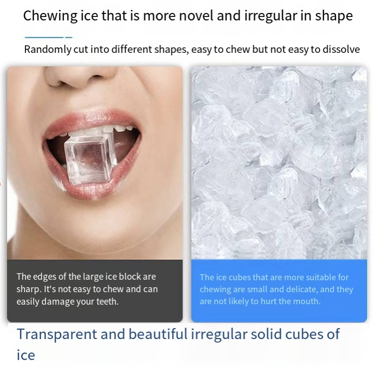 The produced solid cube ice is hard and melts slowly, suitable for chilled drinks, seafood preservation, cocktail mixing, and other scenarios. The ice block shape is regular, and the taste is refreshing. Whether for household daily use or commercial bar counters, it can provide high-quality ice cubes.
