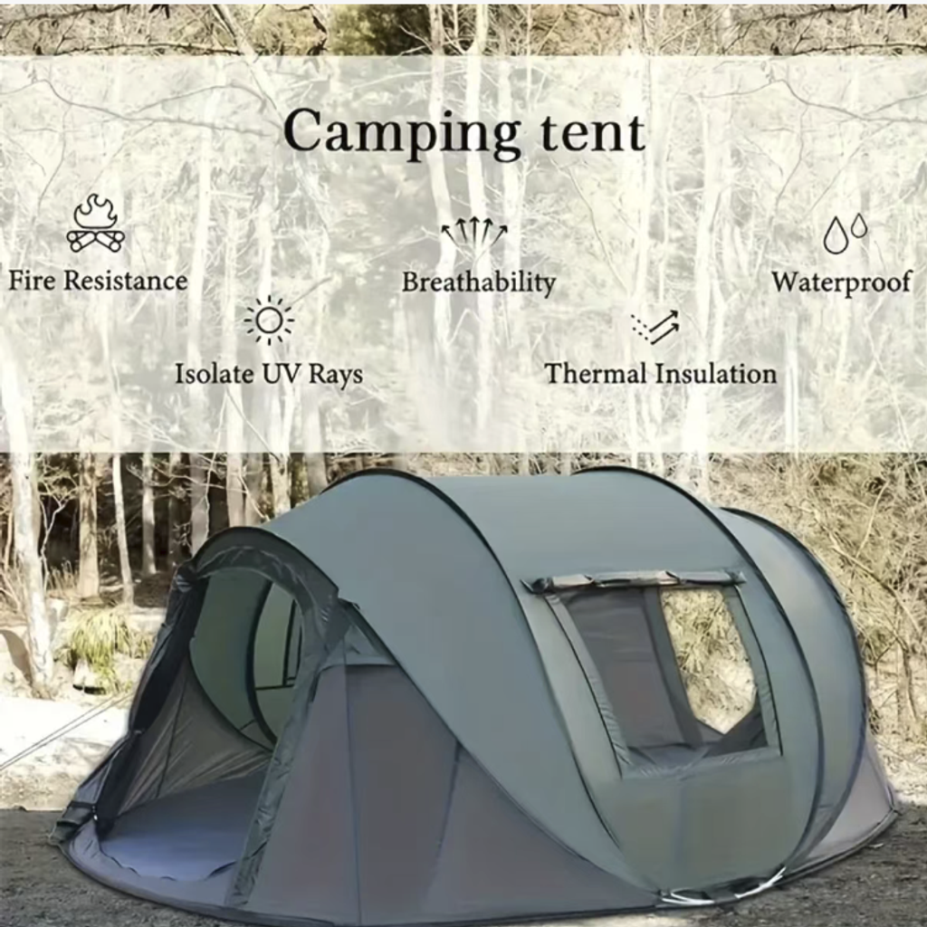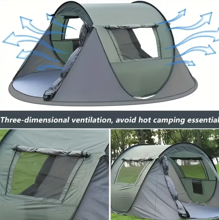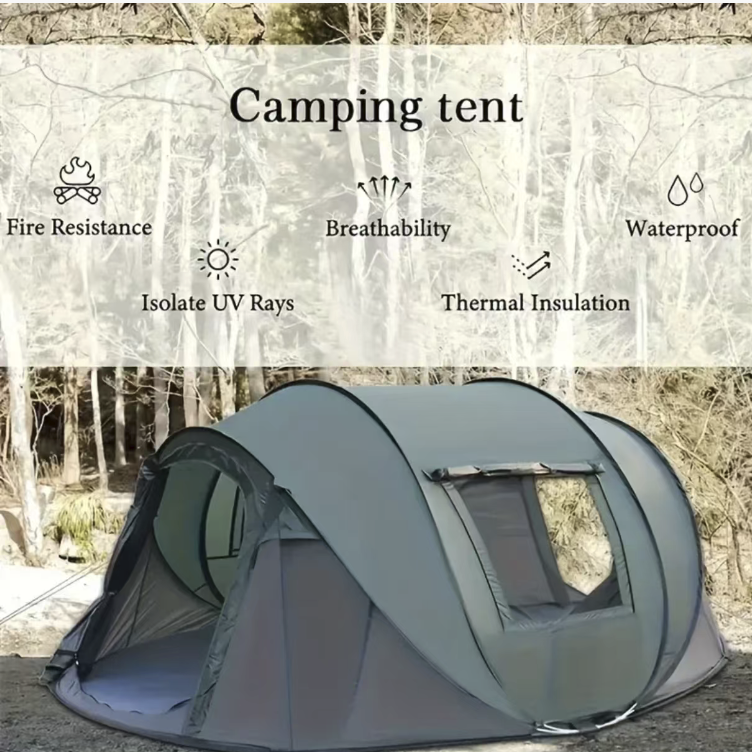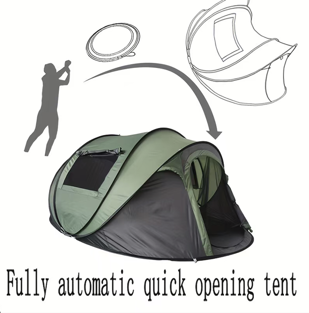 This 3-4 person fully automatic hand-throw tent is easy to set up and opens instantly. It has a spacious interior that is comfortable and not stuffy. It is rainproof, windproof and sunproof, and can be used in various scenarios. It is portable and easy to carry. It is a convenient equipment for family camping and outdoor travel, making camping less cumbersome and allowing you to easily enjoy nature.