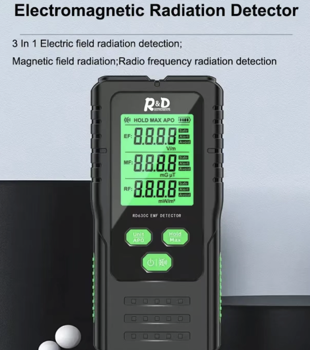 The equipment integrates three detection modules: EF (electric field), MF (magnetic field), and RF (radio frequency). It can accurately measure the electromagnetic radiation values of various types of devices such as household appliances, high-voltage wires, signal base stations, and mobile phone WiFi simultaneously. Whether it is comprehensive EMF monitoring or RF intensity detection, one device can handle it all. Say goodbye to the cumbersome process of switching between multiple instruments and achieve comprehensive radiation scanning.