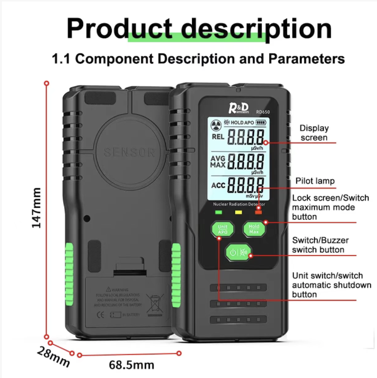 It is equipped with a highly sensitive core sensor, with high measurement accuracy and fast response speed, capable of capturing subtle radiation changes. The body is made of anti-slip and wear-resistant materials, providing a comfortable hand grip, and the operation is simple and convenient. Whether it is for daily home detection or professional engineering measurement, it can output stable and precise data, clearly demonstrating professional-level quality.