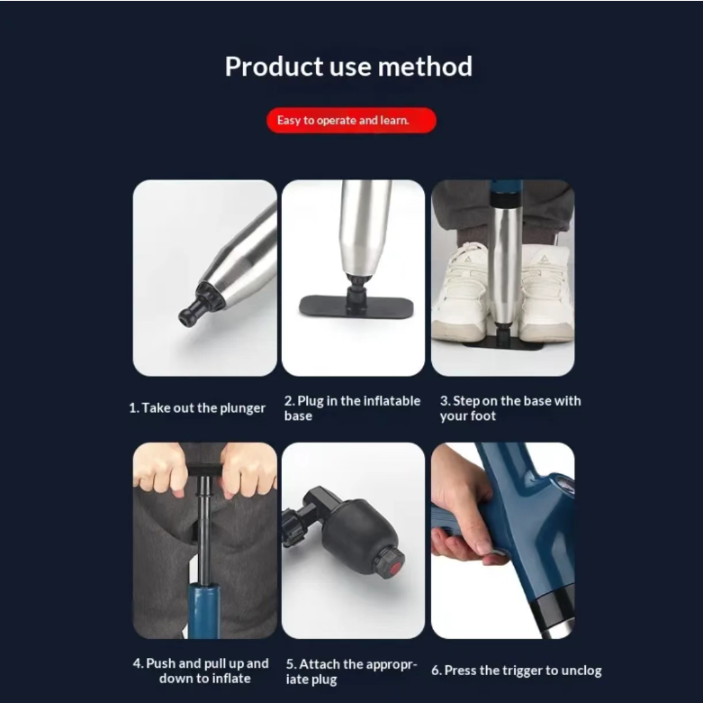 It adopts an 8-in-1 inflatable compression pump design. By manually applying pressure, it instantly releases high-pressure air flow, generating a powerful impact force that directly targets the source of the blockage. Whether it's hair, oil stains, food residues, or hard objects getting stuck, it can be forcefully cleared away, eliminating the embarrassing situation of traditional plugging tools' repeated ineffectiveness. Truly achieving "one blast to clear the blockage".