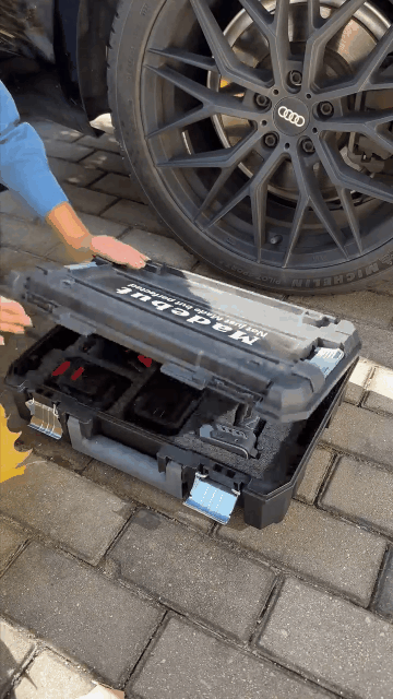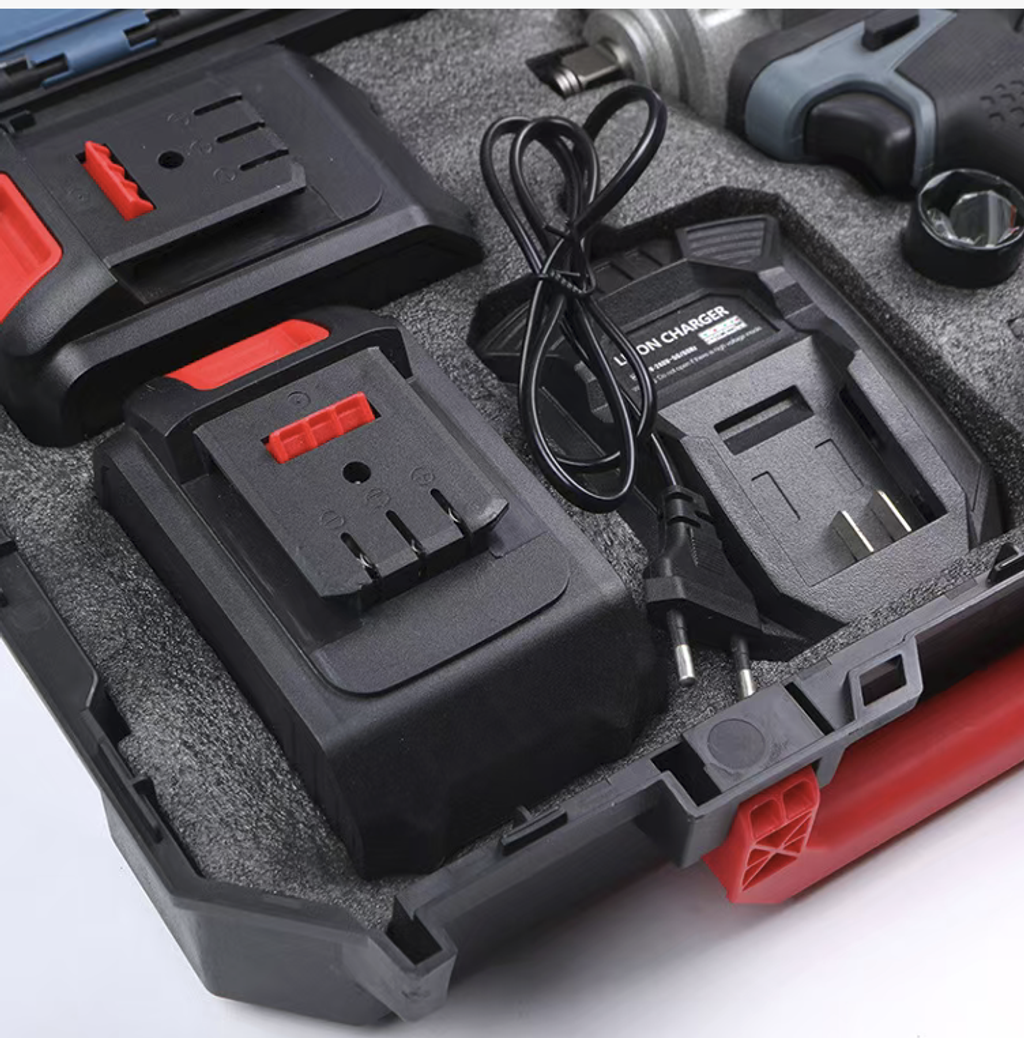The entire set of tools is stored in a thick and shock-resistant toolbox. They are neatly arranged in precision sponge slots. The main unit, dual batteries, charger and sleeve accessories are all included. The box has a handle design, which is sturdy and durable. Whether it is placed in an auto repair shop, trunk of a car or construction site, it can be easily accessed and used at any time, eliminating the hassle of scattered tools.